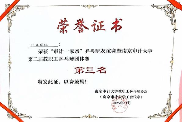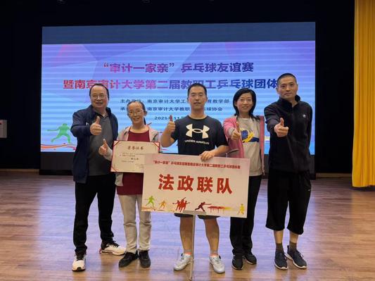 近日,马克思主义学院和法学院教职工组成的法政联队在“审计一家亲”乒乓球赛暨南京审计大学第二届教职工乒乓球团体赛中获得了第三名的好成绩。