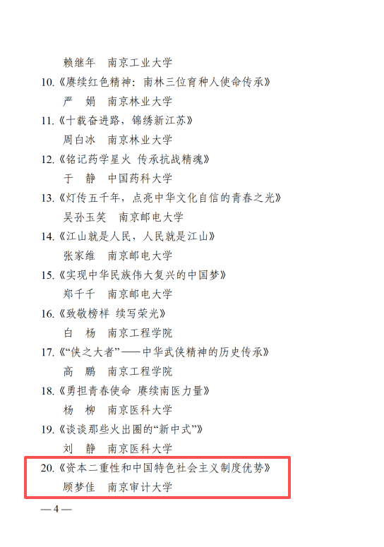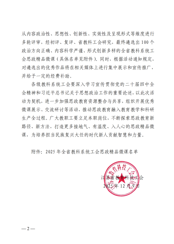 近日,我院顾梦佳老师主讲的微课《资本二重性和中国特色社会主义制度优势》成功入选2025年全省教科系统工会思政精品微课。