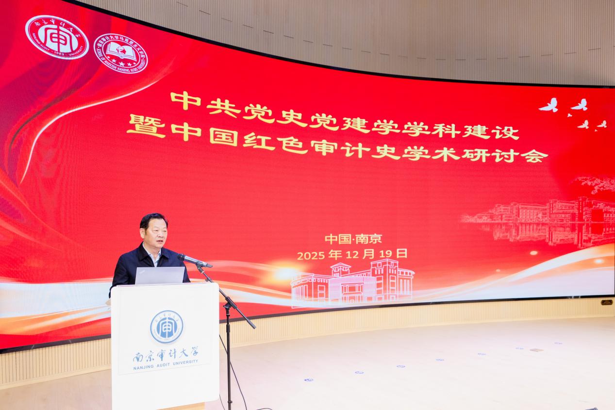 为深入学习贯彻党的二十届四中全会精神,全面落实习近平总书记关于党的历史、党的建设及审计工作重要论述,深化中共党史党建学学科体系研究,挖掘中国红色审计史的时代价值,12月19日上午,由南京审计大学主办,马克思主义学院与法学院(纪检监察学院)、国家安全学院(公共管理学院)共同承办的中共党史党建学学科建设暨中国红色审计史学术研讨会在学校大学生活动中心召开。
