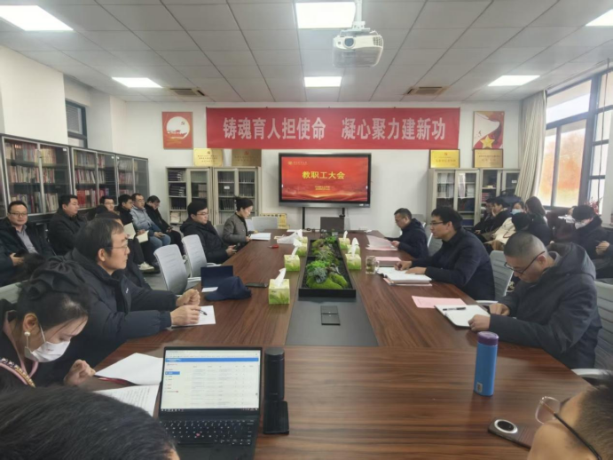 1月15日上午,马克思主义学院在文济楼307会议室召开学期末教职工大会。马院党政班子成员、全体教职工参加。会议由党总支书记杨飞主持。