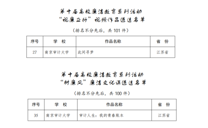 其中,由学院郑如老师主持报送的《此间寻梦》入选“视廉正行”视频优秀作品;由学院顾梦佳老师主持报送的《审计人生:我的青春账本》入选“树廉风”廉洁文化课优秀作品。