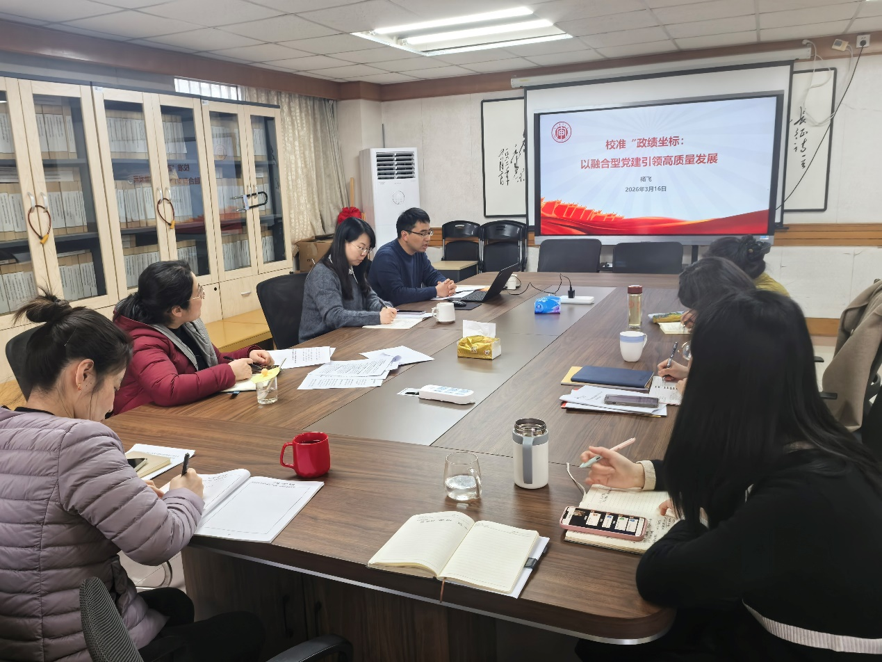 3月16日上午,学院党总支书记杨飞应邀为学校审计处党支部全体党员讲授题为《校准“政绩坐标”:以融合型党建引领高质量发展》的党课。